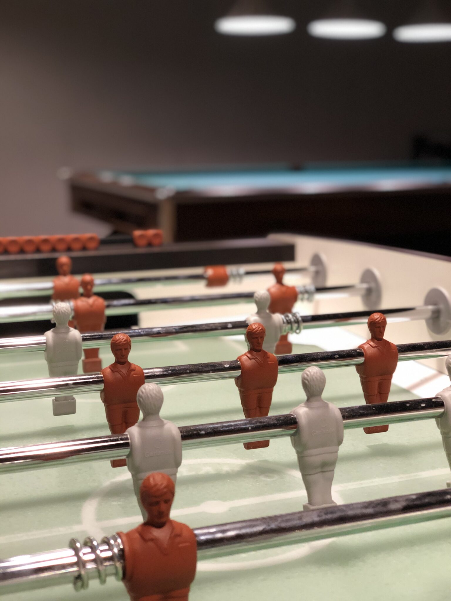Spelrum med biljard, dart, shuffleboard och fotbollsspel