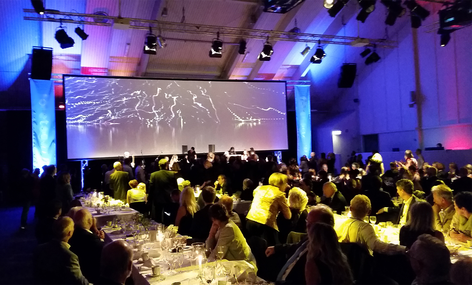 Här dukar vi upp fikabufféer, mingelluncher och en och annan välkomstdrink före middagen. Är det dags för en stor fest eller galamiddag? Vår eventhall rymmer inte bara 380 middagsgäster vid runda bord, här finns även en scen för spex och underhållning till middagen.