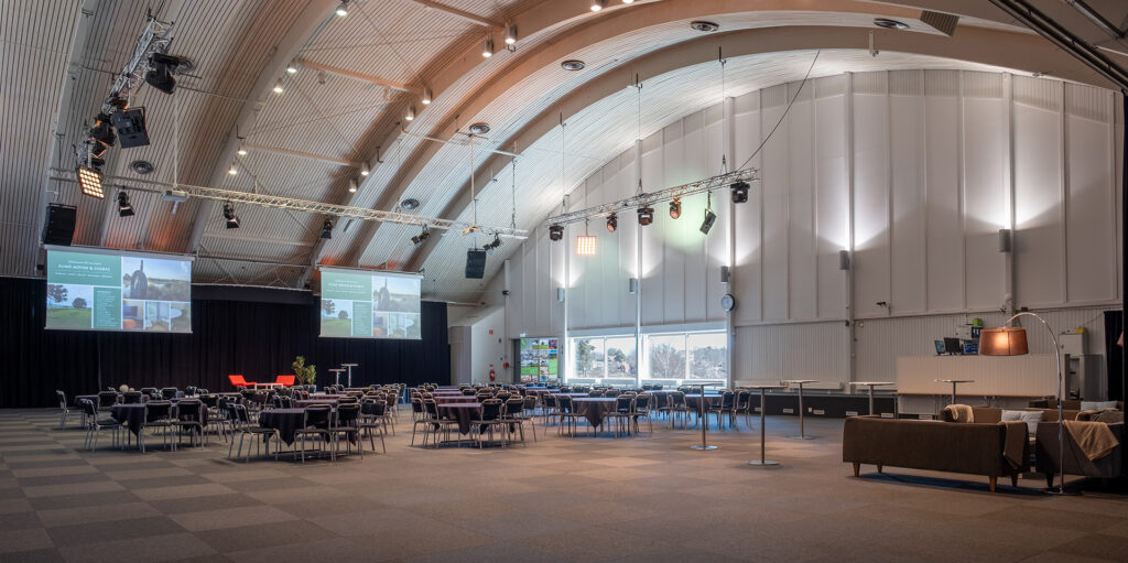 Lokalens 800 kvm och välvda tak ger en härlig rymd och en känsla av att allt är möjligt. Här gästas vi av allt från små möten, där aktiviteter och grupparbeten sker på olika platser till de storslagna evenemangen som man sent glömmer.
