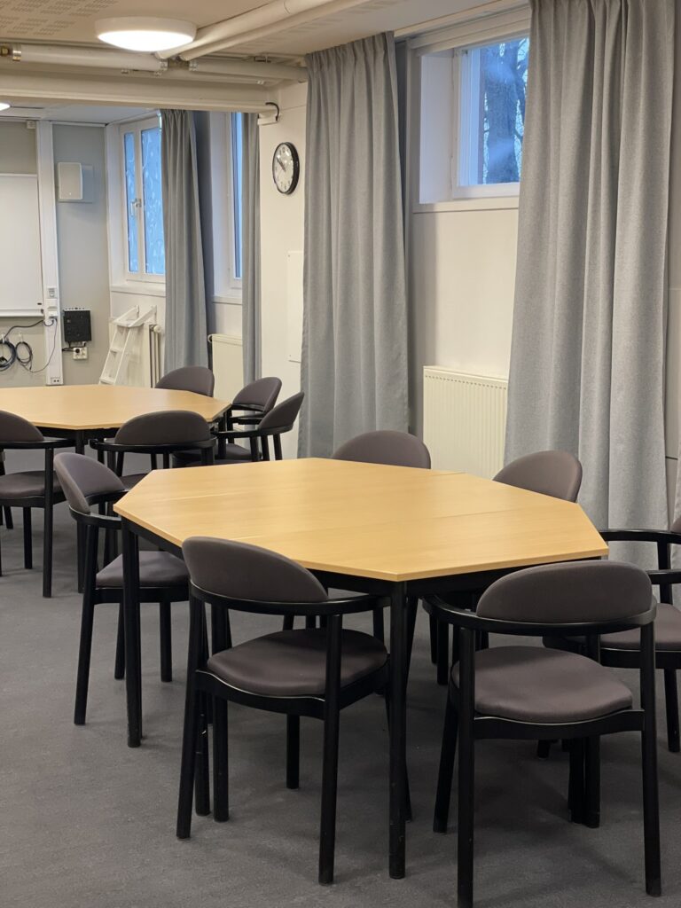 - check Ljudanläggning med mixerbord; möjlighet för tal, mingelmusik, (anslutning 3,5 mm stereoplugg) går att komplettera med externa enheter såsom mikrofon, videomötesutrustning
